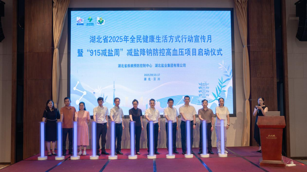 ?9月16日上午,由省衛(wèi)健委、省疾控中心、湖北鹽業(yè)集團聯(lián)合舉辦的湖北省2025年全民健康生活方式行動宣傳月暨“915減鹽周”減鹽降鈉防控高血壓項目正式啟動,省衛(wèi)健委、省疾控中心、湖北鹽業(yè)集團領(lǐng)導與項目市州負責人代表一起啟動項目。