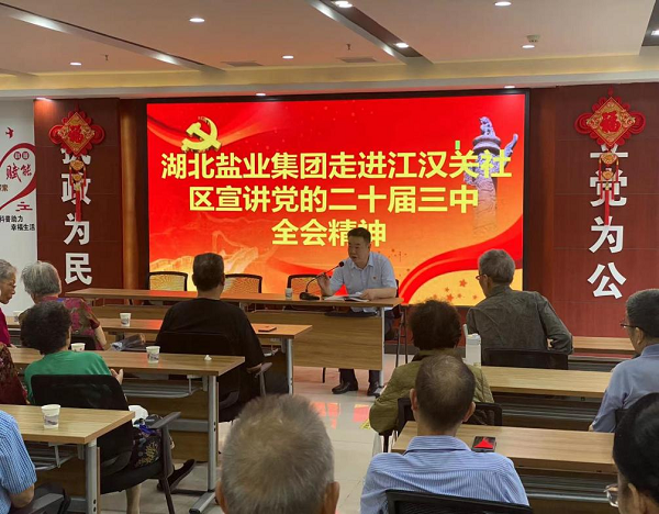 全體與會黨員認真學(xué)習(xí)習(xí)近平總書記在中央全面深化改革委員會第六次會議上的重要講話精神、中共湖北省委十二屆七次全體會議精神、《中國共產(chǎn)黨不合格黨員組織處置辦法》等文件精神后,楊軍以《學(xué)習(xí)貫徹二十屆三中全會精神——勇?lián)姑七M改革發(fā)展》為主題講專題黨課,他號召黨員要以身作則,率先垂范,以自己的實際行動影響和帶動身邊的群眾積極參與改革,要做好宣傳引導(dǎo)工作,讓廣大群眾理解改革、支持改革、參與改革,凝聚起推進改革的強大合力。并表示湖北鹽業(yè)集團也將積極履行企業(yè)責(zé)任和擔(dān)當(dāng),為社區(qū)共建共治做好服務(wù)。??
