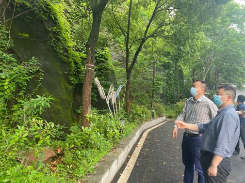(劉江海實(shí)地查看院內(nèi)山體滑坡隱患點(diǎn))