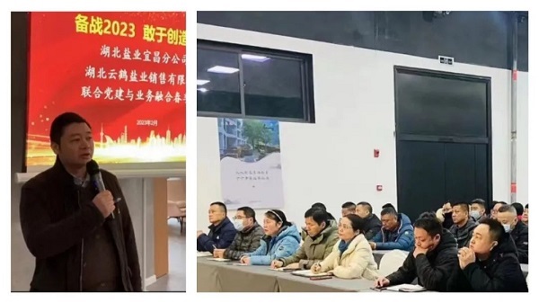 一年春作首,萬事行為先。2023年2月9日-10日,湖北鹽業(yè)集團有限公司宜昌分公司和湖北云鶴鹽業(yè)銷售有限公司以“備戰(zhàn)2023,敢于創(chuàng)造奇跡!”為主題的聯(lián)合黨建與業(yè)務(wù)融合春季集訓(xùn)圓滿舉辦。本次活動為期兩天,通過黨建引領(lǐng)、業(yè)務(wù)培訓(xùn)、集中夜學(xué)和團隊建設(shè)等方式,統(tǒng)一思想、凝聚共識、堅定信心、提升能力,激發(fā)了全體干部職工的奮斗精氣神。