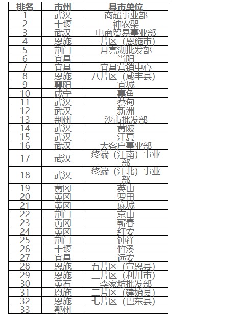 根據(jù)《市州分公司2020年度目標(biāo)考核和薪酬激勵(lì)實(shí)施方案》(鄂鹽司人力﹝2020﹞13號(hào))的相關(guān)要求,根據(jù)公正、公開的原則,經(jīng)測算,現(xiàn)將2020年縣市單位小包裝鹽銷售市場占比排名進(jìn)行公示。公示期為2021年1月22日—2021年1月25日。