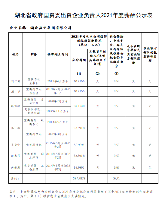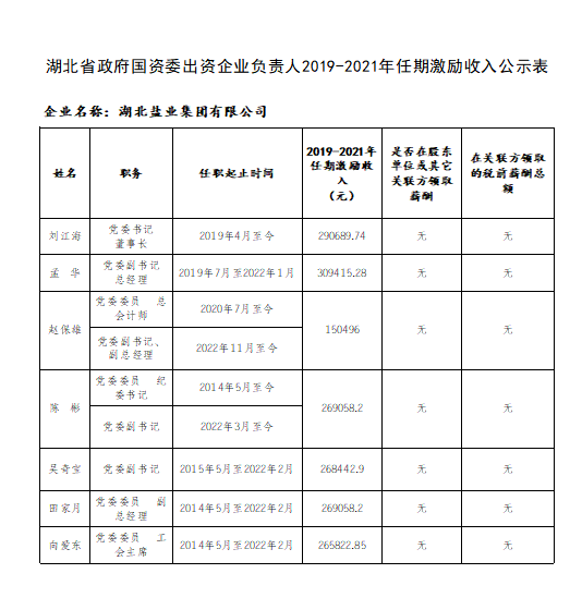 湖北省政府國(guó)資委出資企業(yè)負(fù)責(zé)人2019-2021年任期激勵(lì)收入公示表、湖北省政府國(guó)資委出資企業(yè)負(fù)責(zé)人2021年度薪酬公示表