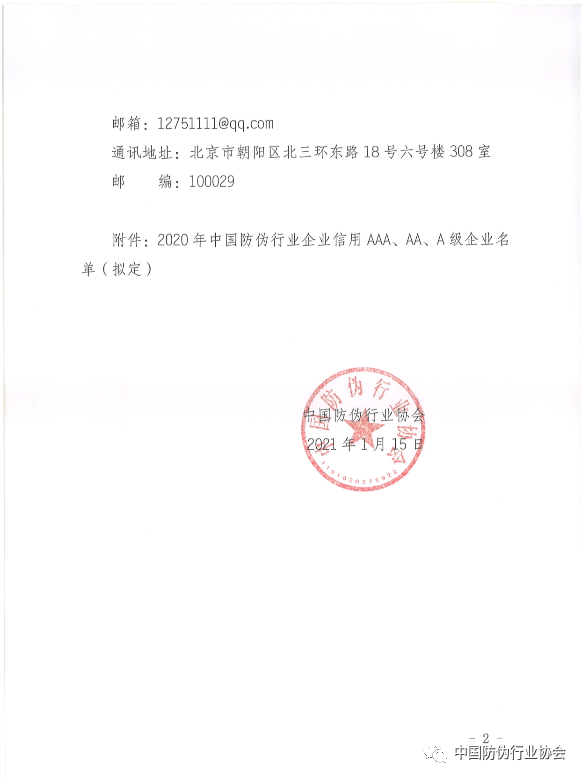 關(guān)于2020年中國(guó)防偽行業(yè)企業(yè)質(zhì)量信用AAA、AA、A級(jí)企業(yè)的公示