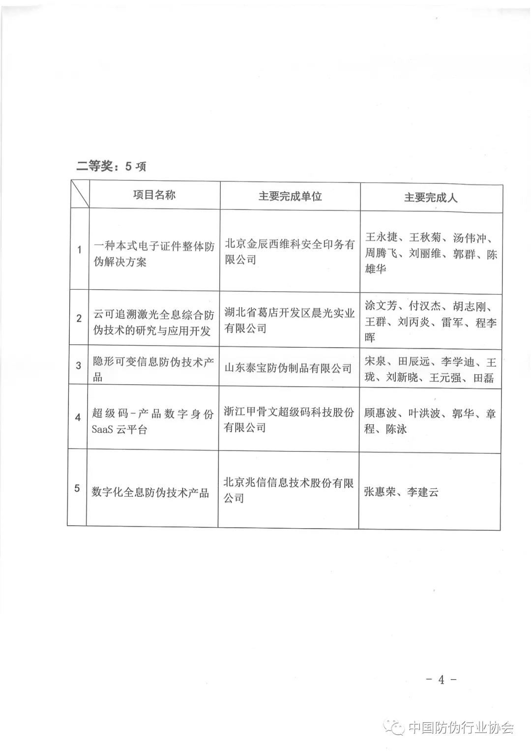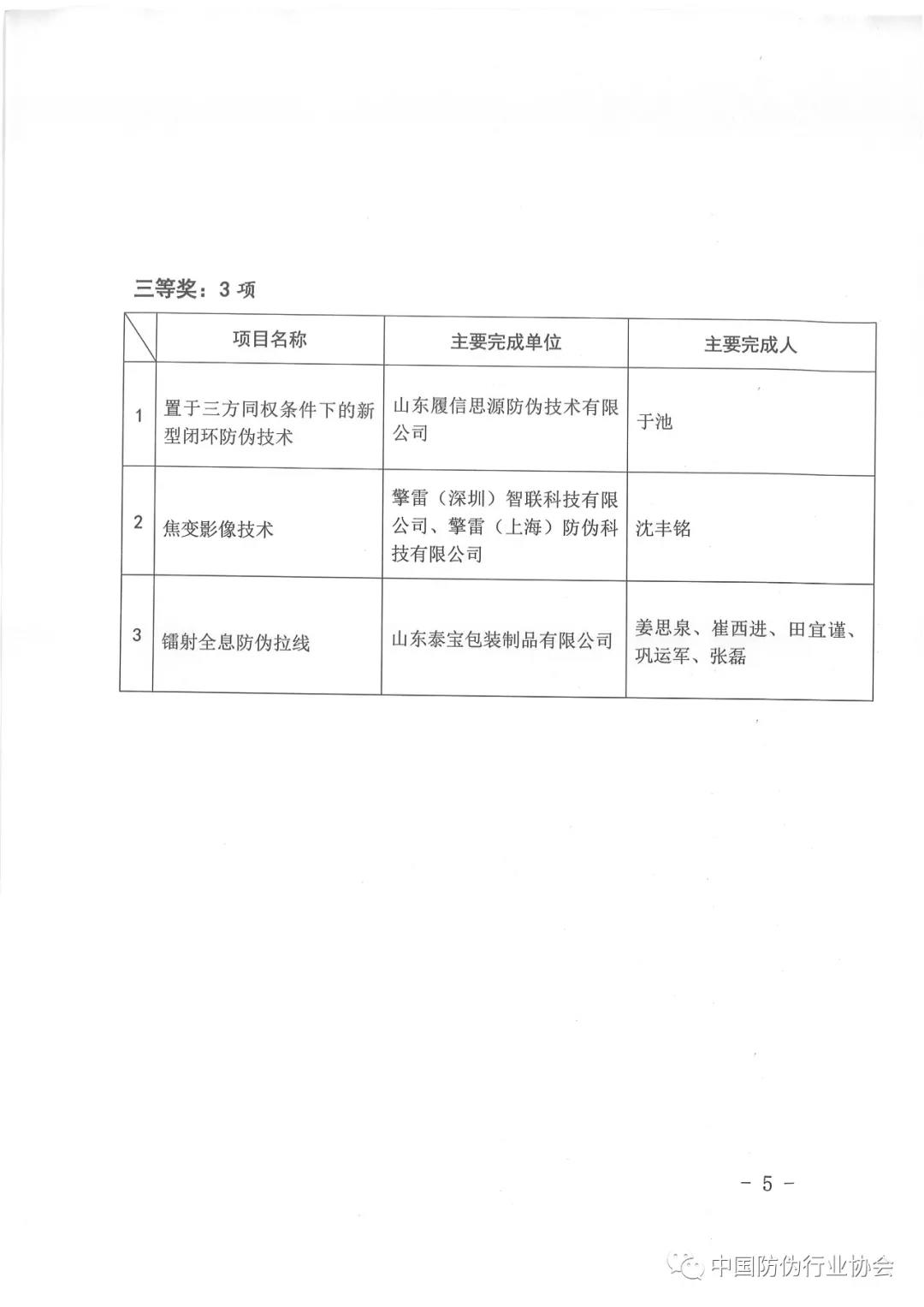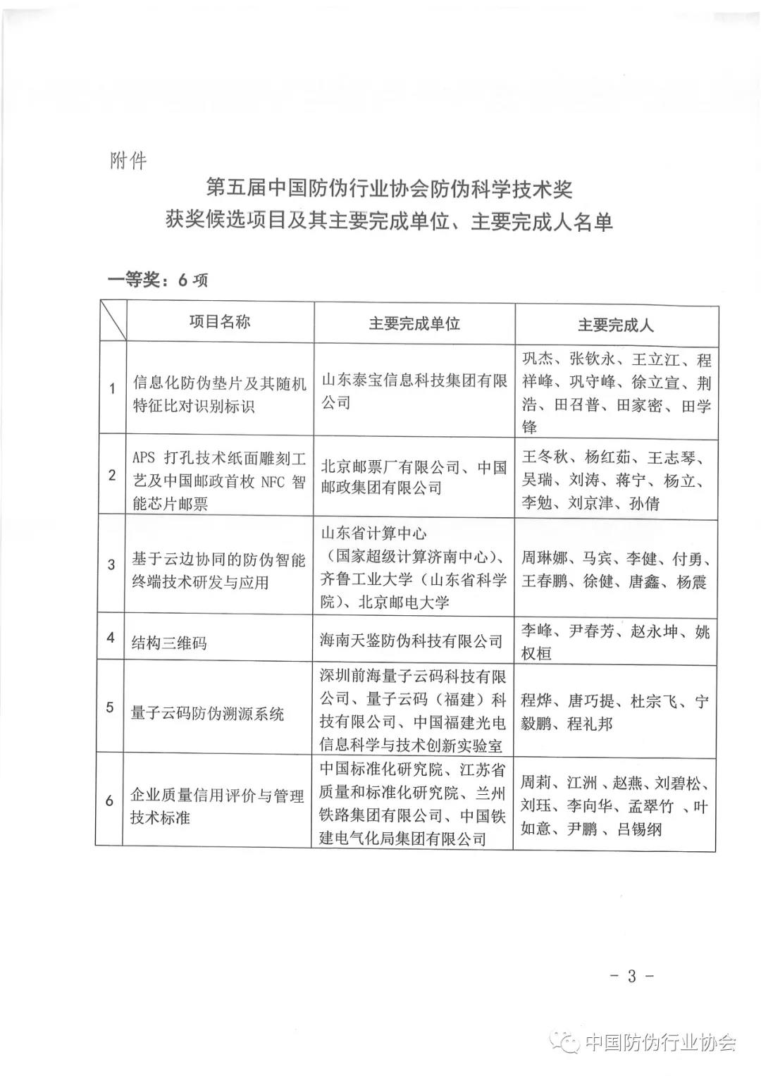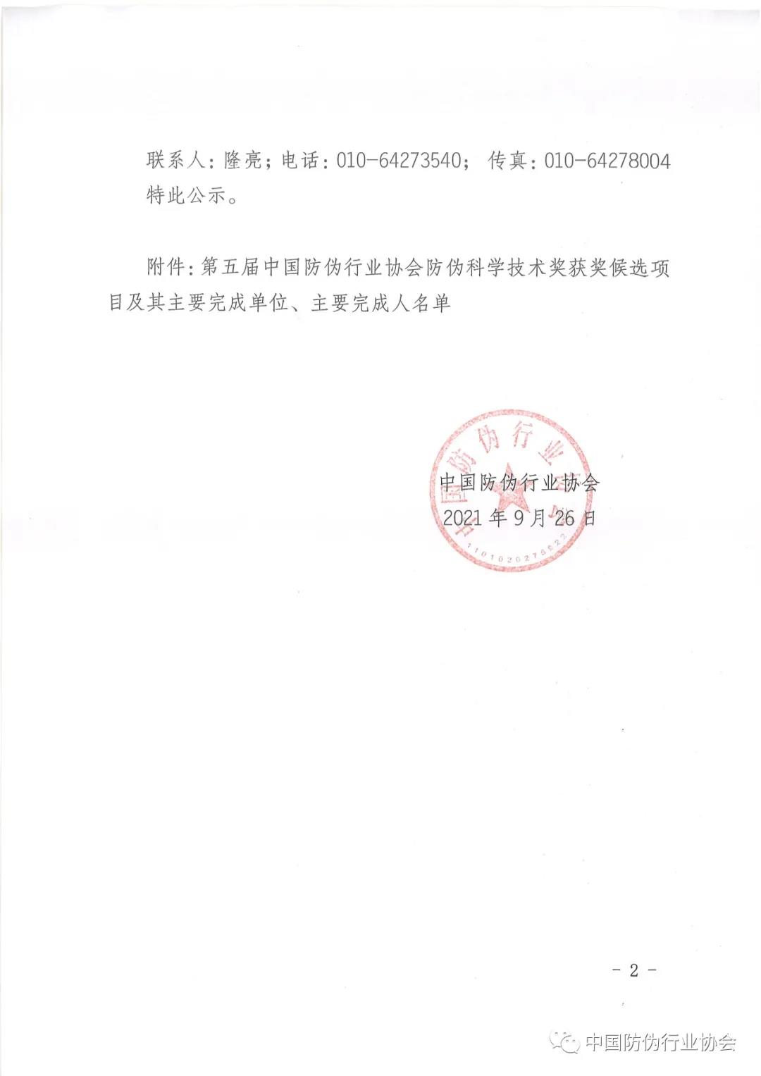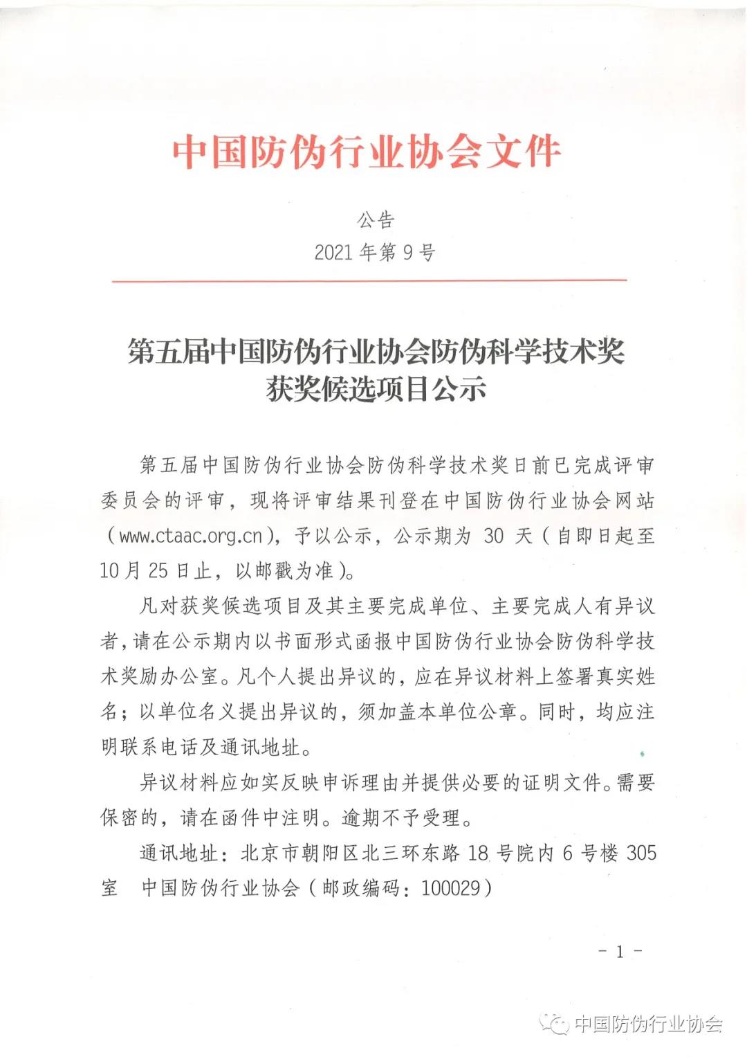 第五屆中國防偽行業(yè)協(xié)會防偽科學(xué)技術(shù)獎獲獎候選項(xiàng)目公示