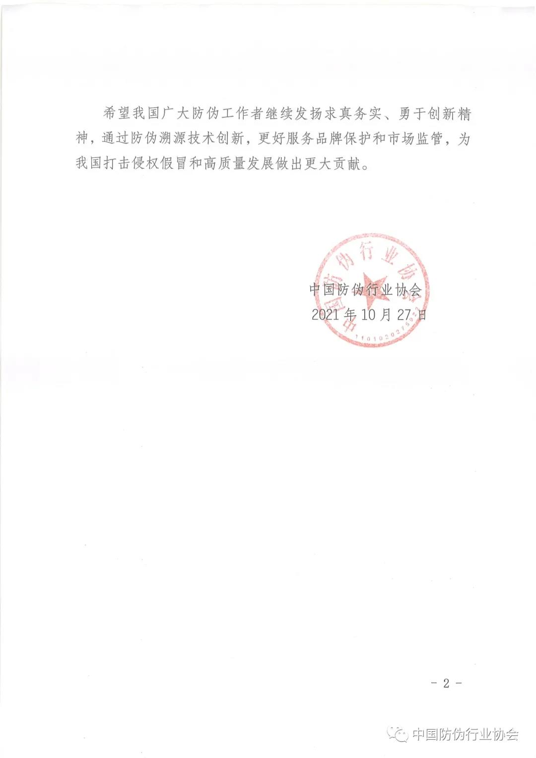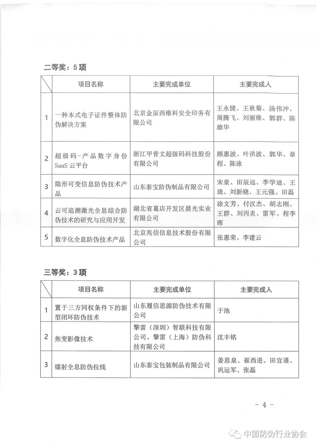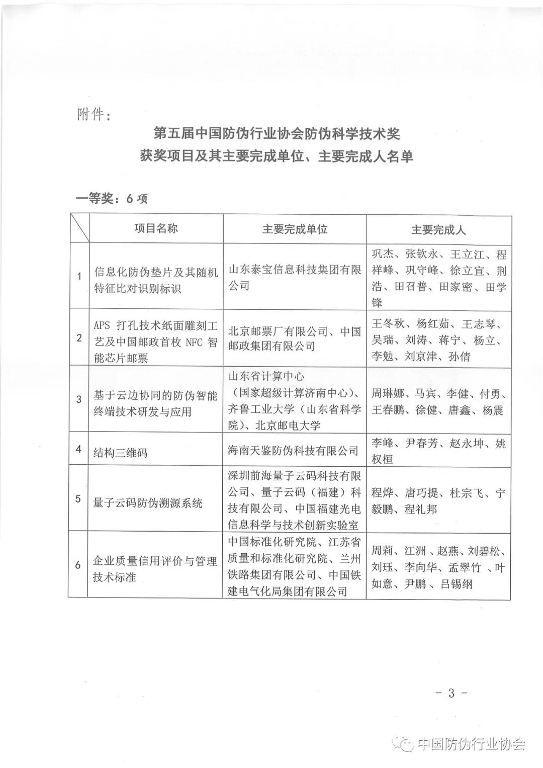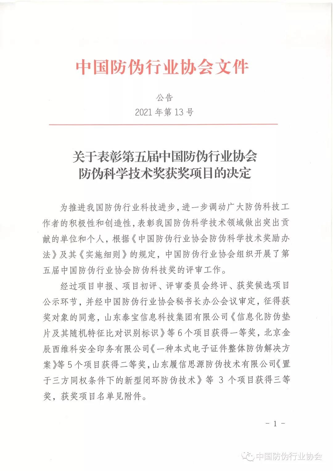 關(guān)于表彰第五屆中國防偽行業(yè)協(xié)會(huì)防偽科學(xué)技術(shù)獎(jiǎng)獲獎(jiǎng)項(xiàng)目的決定