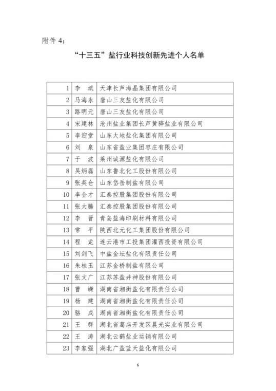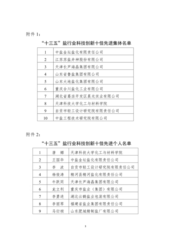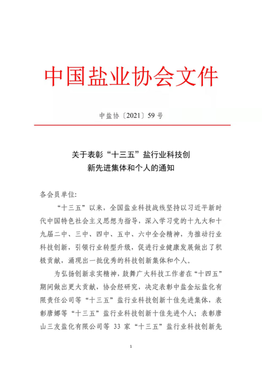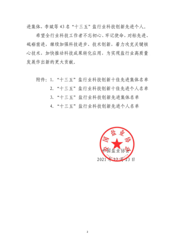 關(guān)于表彰“十三五”鹽行業(yè)科技創(chuàng)新先進(jìn)集體和個(gè)人的通知